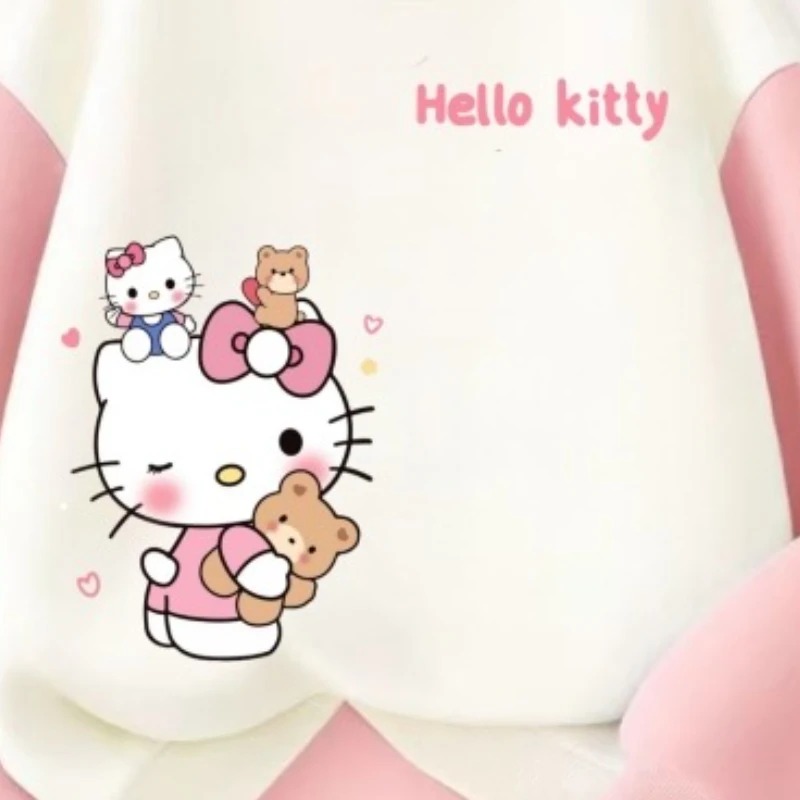 طقم خريفي للفتيات 2 قطعة من سانريو مكون من بلوزة مطبوعة وسروال رياضي مريح برسومات مرحبا كيتي الشهيرة وتصميم مرقع جذاب. الطقم عملي ومريح للارتداء اليومي، مناسب للمدرسة والنزهات، ويمنح طفلتك إطلالة لطيفة وأنيقة في الخريف.