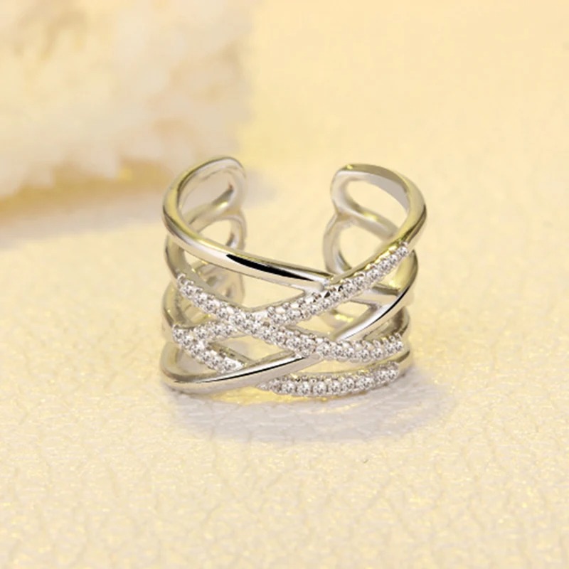 خاتم نسائي من الفضة الإسترلينية عيار 925 مزين بحجر الزركون الكريستالي الأصلي. تصميم عصري وأنيق يضفي لمسة فاخرة على إطلالة المرأة في المناسبات الخاصة أو الاستخدام اليومي، مع جودة عالية ومتانة تدوم طويلاً.