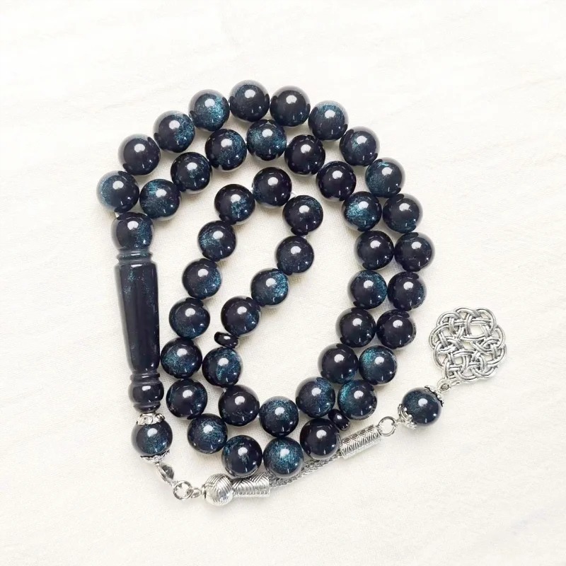مسبحة إسلامية 10 ملم بعدد 45 حبة مصنوعة من الأكريليك بتقليد شمع العسل مع تصميم ضوء النجوم الأنيق. سوار واحد مناسب للصلاة وذكر الله، مثالي للاستخدام اليومي وفي المناسبات الدينية. تصميم خفيف وسهل الحمل، يناسب الصلوات في الشرق الأوسط وجميع الأماكن.
